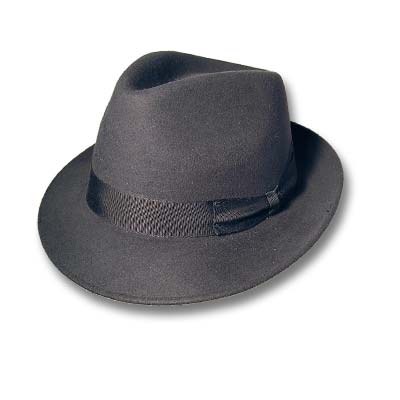 Sombrero de vestir confeccionado en fieltro en color gris.Diseño tipo Borsalino con cinta exterior en gris mas claro y badana interior en grogre. Medidas aproximadas: 10cm de copa y 5cm de ala.*El color de las fotografías puede variar ligeramente del original.